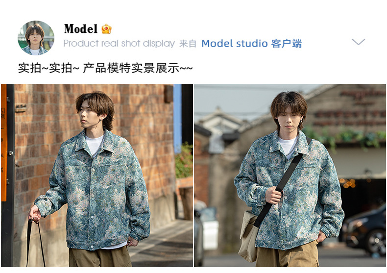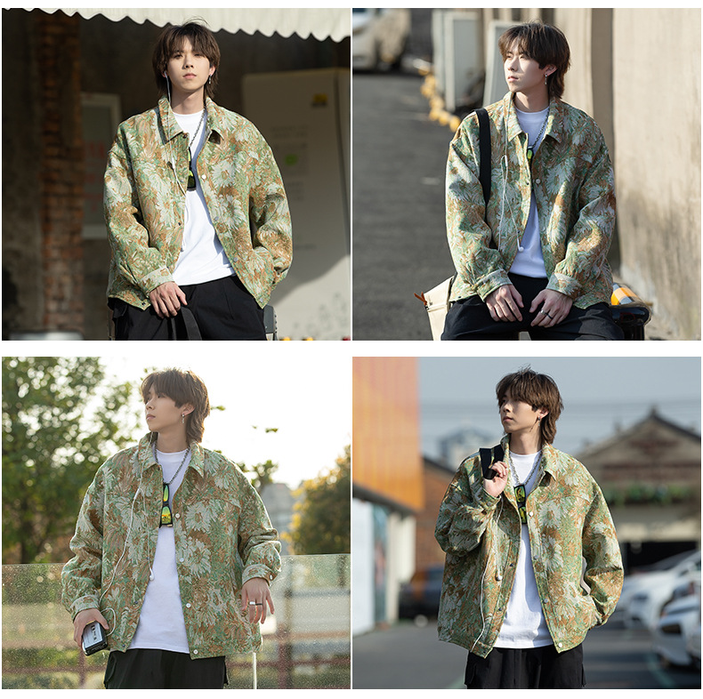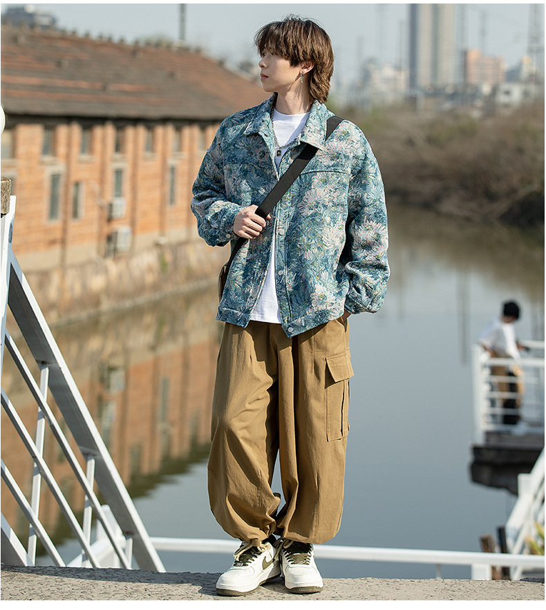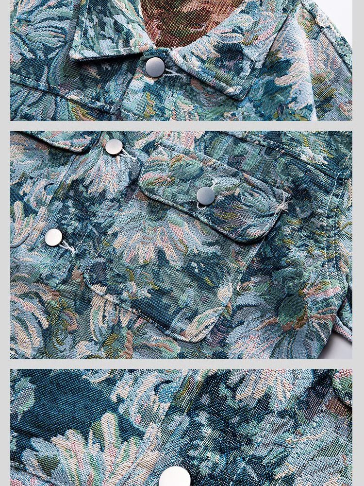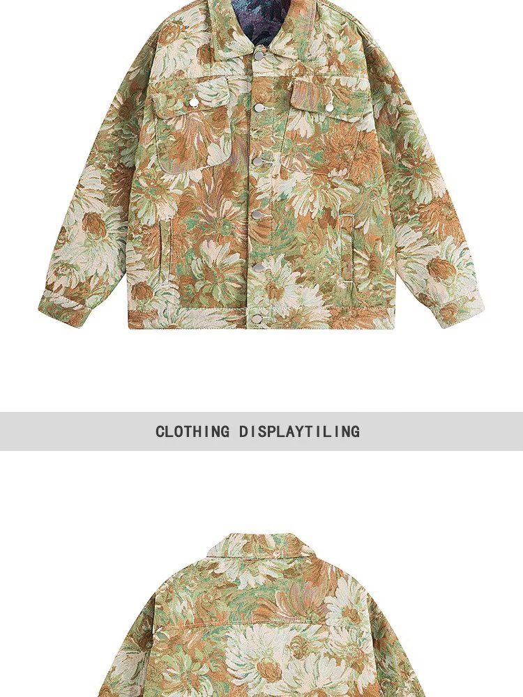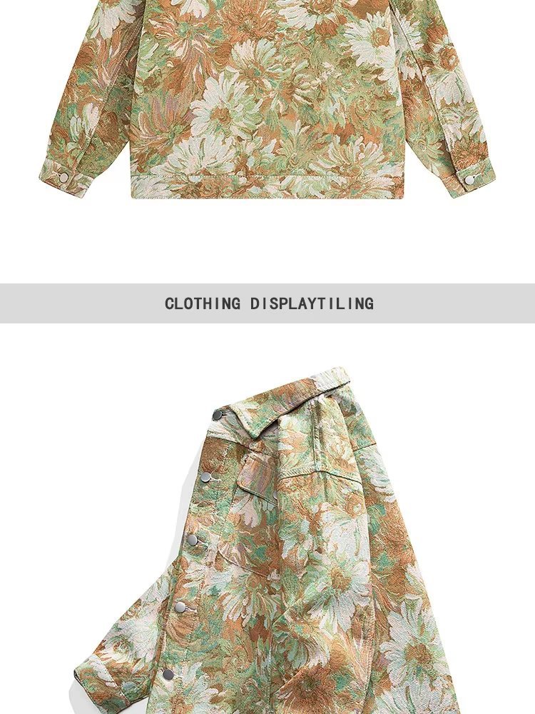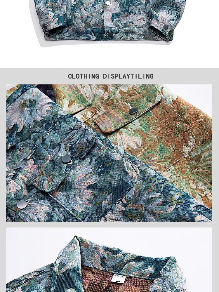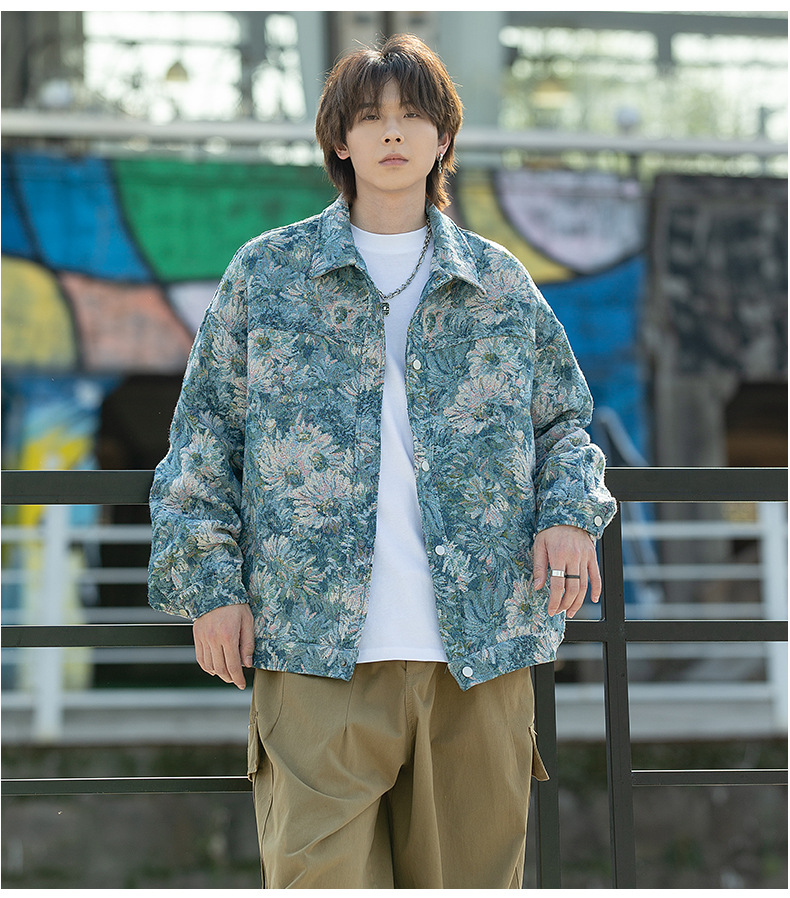 Full Flowers Jacquard Denim Jacket Men Korean Fashion Turndown Collar Jacket Women Loose Couples Casual Coat Autumn 2023